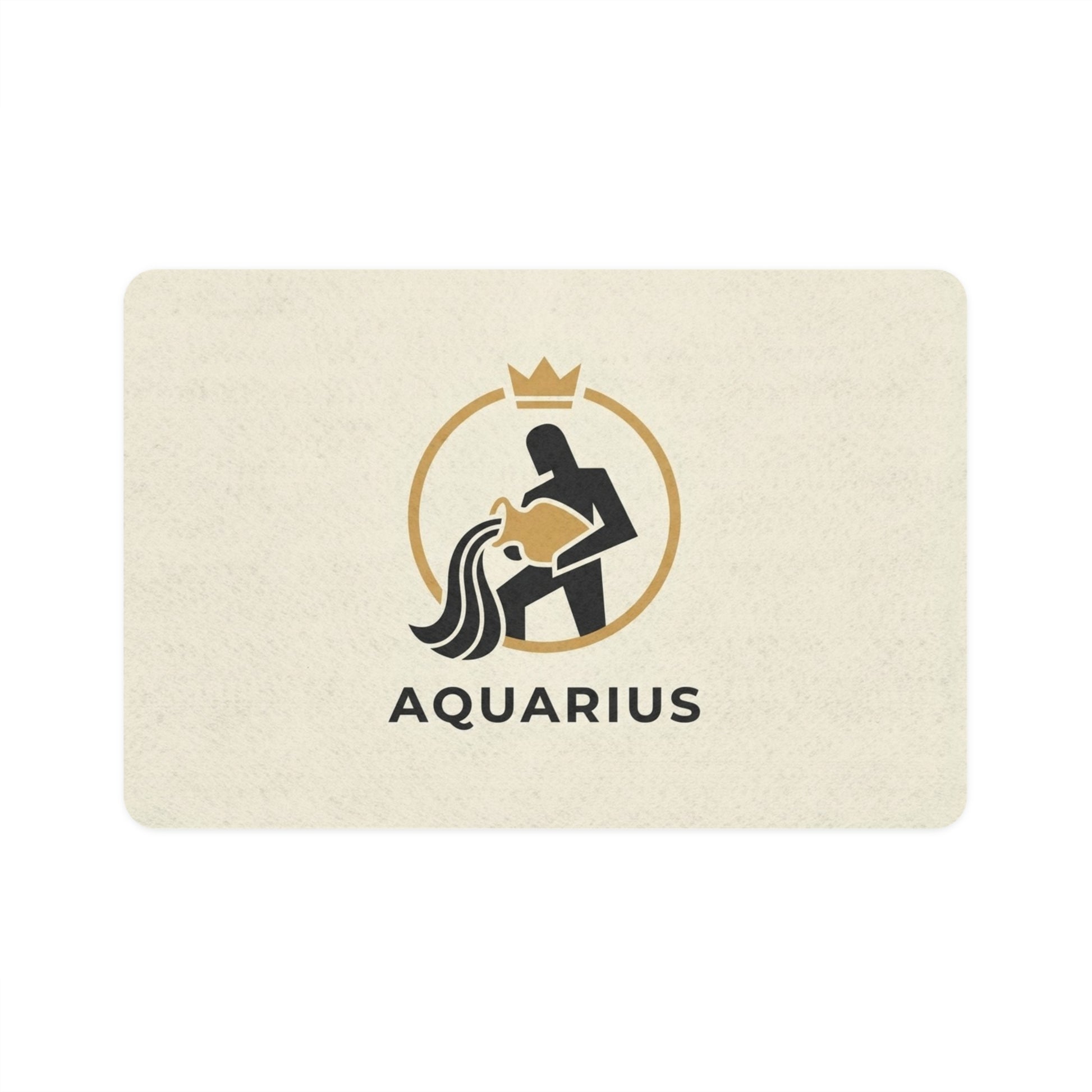 A sturdy, stylish pet food mat that brings personality to your pet’s feeding spot. The smooth, full-color polyester surface showcases a bold Aquarius emblem with clean lines and warm gold accents, while the neoprene rubber underside grips floors and keeps bowls steady. Quick-drying and easy to wipe clean, the mat protects floors from spills and kibble scatter. Its compact 12x18 size fits small to medium feeding stations and slips neatly under bowls or trays — a simple way to add a little zodiac flair to daily routines.