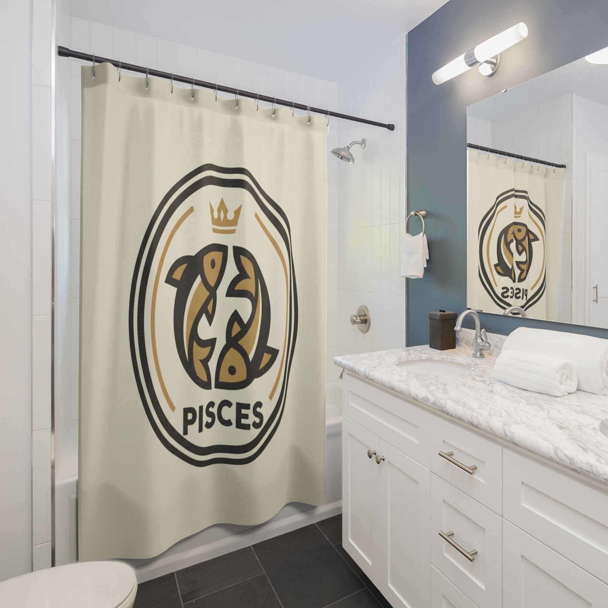 Pisces Zodiac Shower Curtain — Gold Crown Astrological Bathroom Decor